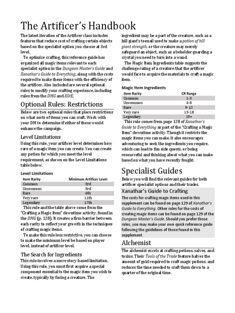 747390 The Artificers Handbook2 0 Pdf Armour Dungeons Dragons